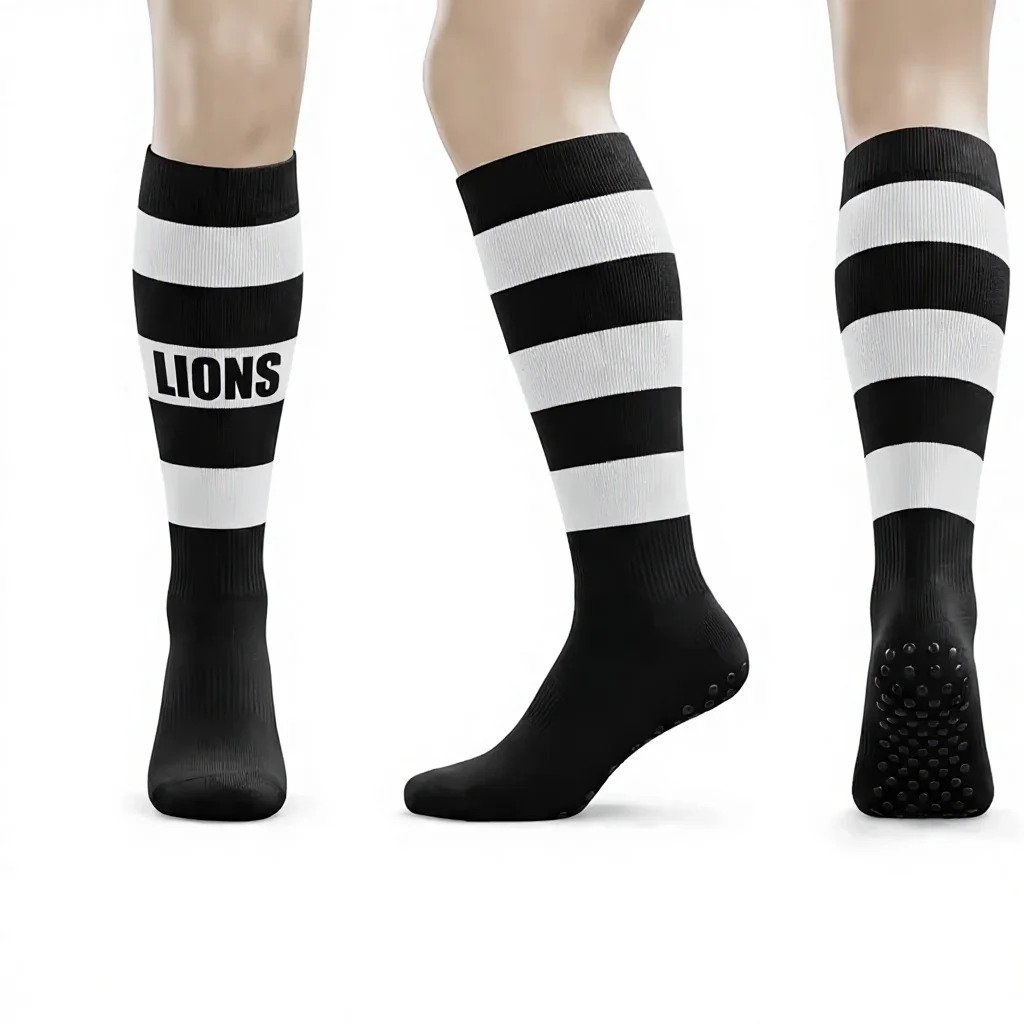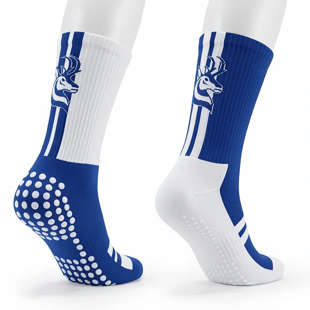 Every pair is built to your specifications. Opt for our Pro-Grip Technology—featuring silicone traction pads to eliminate foot-slip and boost agility—or our Grip-Free performance knit for classic comfort. Because our designs are knitted directly into the fabric rather than printed, your colours and crest will stay vibrant and sharp all season long.